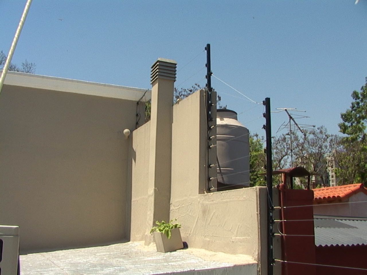 Los balcones expuestos al intruso comúnmente llamado hombre araña se pueden proteger con cerco eléctrico ya sea por arriba de la baranda o por debajo de esta. Por debajo se colocan a 45º hacia afuera cortando la trepada e imposibilitando el acceso. Terrazas: En las zonas densamente pobladas con construcciones de medianera a medianera y con terrazas vecinas contiguas es frecuente que algún intruso entre por alguna casa de la manzana y luego se mueva libremente de terraza en terraza y ver cual le es más fácil para entrar. Por este motivo es importante proteger la terraza con un cerco eléctrico, en este caso se evalúan los riesgos de acceso por lado y se coloca en cada sector la cantidad de hiladas necesarias como para impedir el paso a cualquier intruso.